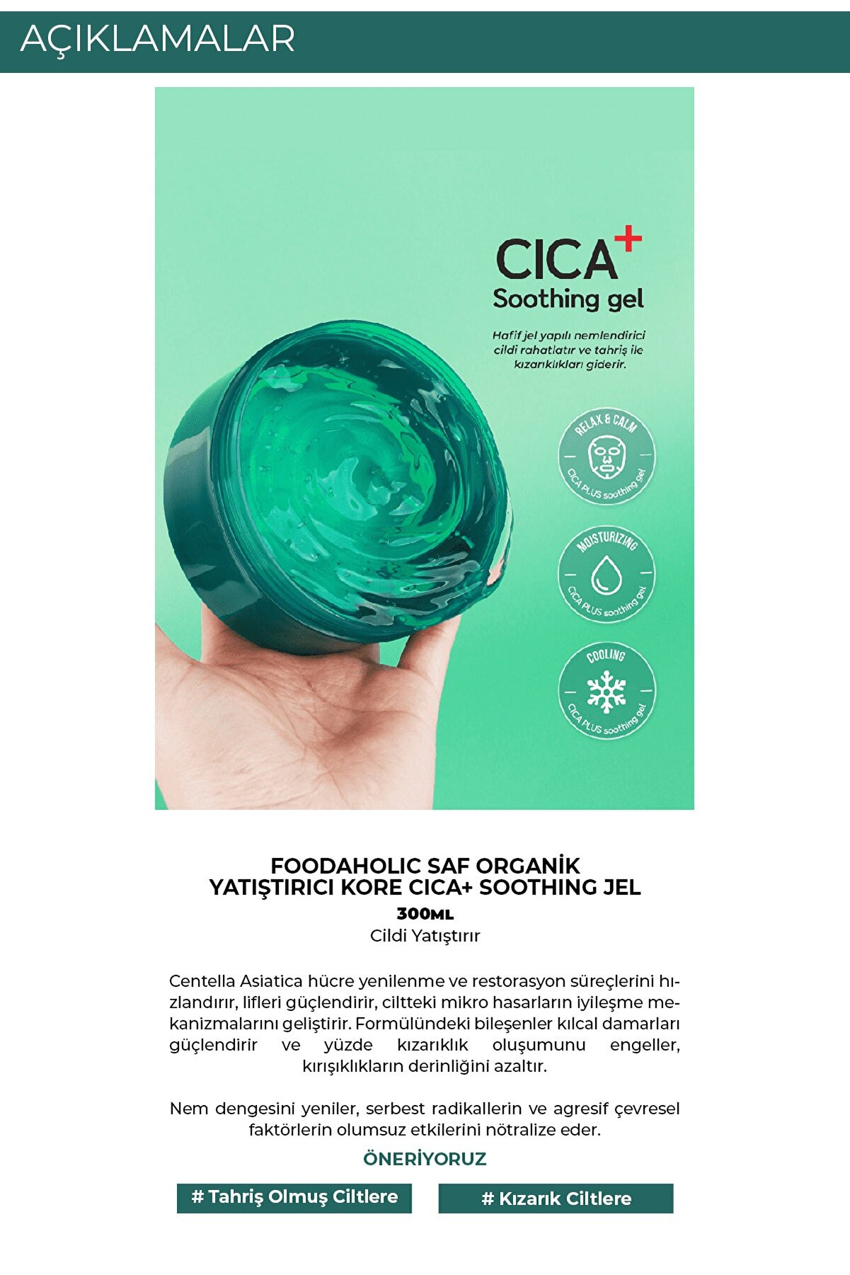 “FOODAHOLIC Centella Asiatica Saf Organik Yatıştırıcı Ve Akne Karşıtı Kore Cica Soothing Jel Krem 300ml” için yorum yapan ilk kişi siz olun