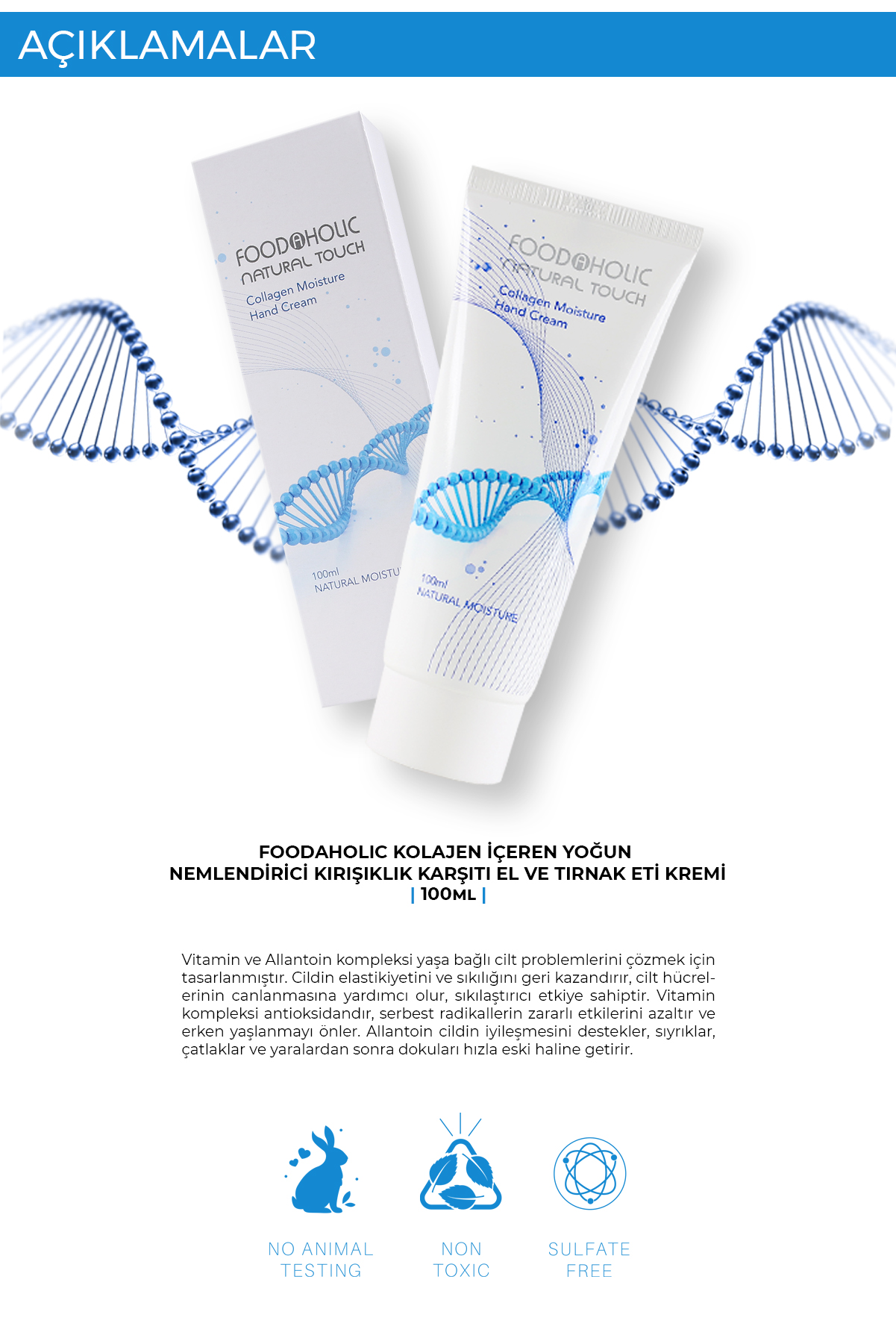 FOODAHOLIC Kolajen İçeren Yoğun Nemlendirici & Kırışıklık Karşıtı El ve Tırnak Eti Kremi 100 ml