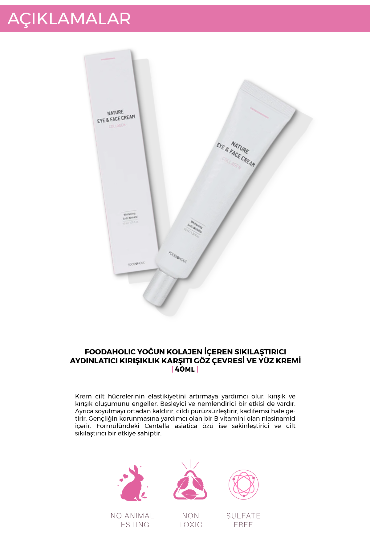 FOODAHOLIC Yoğun Kolajen İçeren Sıkılaştırıcı, Aydınlatıcı & Kırışıklık Karşıtı Göz Çevresi ve Yüz Kremi 40 ml