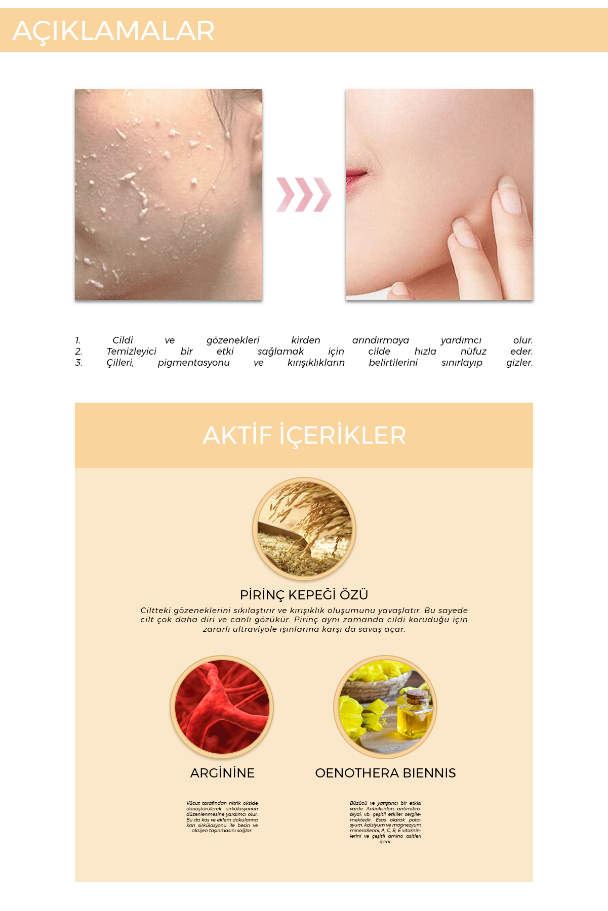 ✔ Cilt tonunu eşitlemeye ve aydınlatmaya yardımcı olur