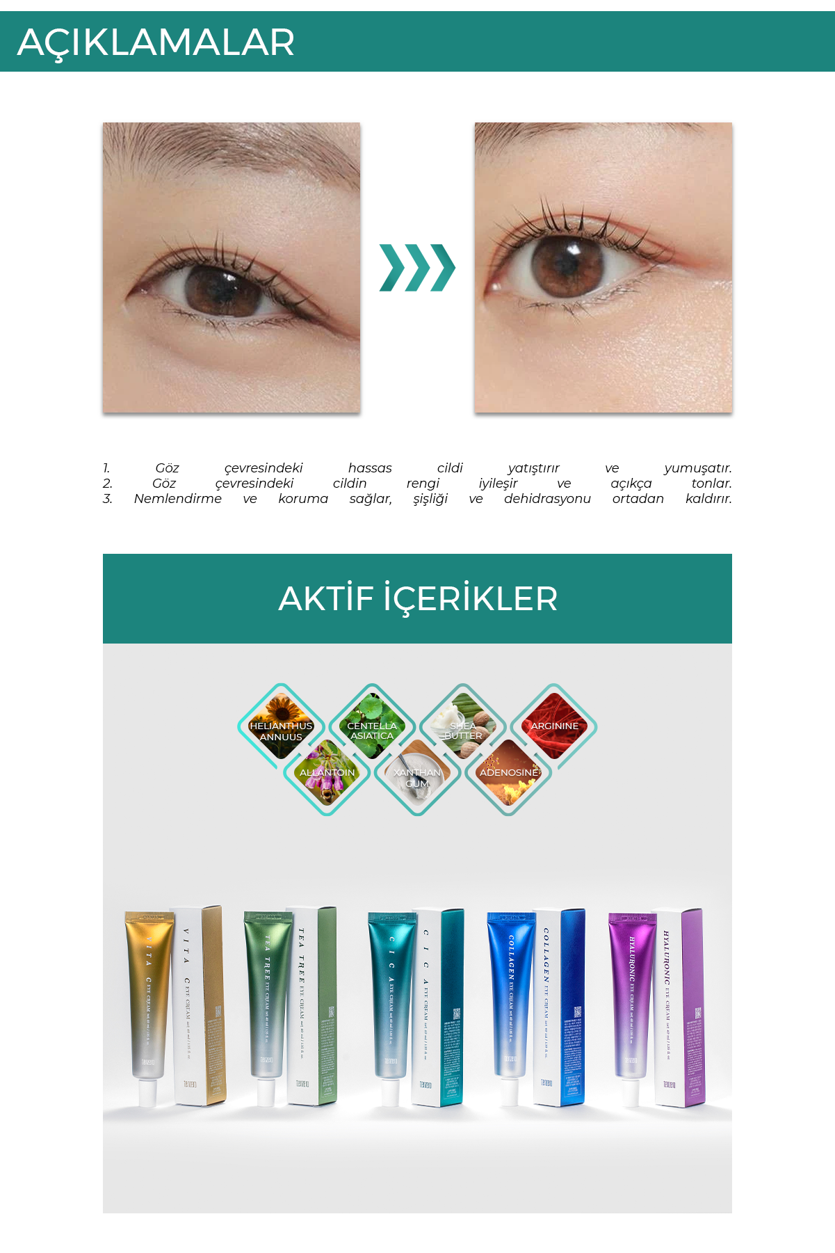 Hyaluronik Asit: Göz çevresine yoğun nem kazandırarak daha dolgun bir görünüm sağlar.