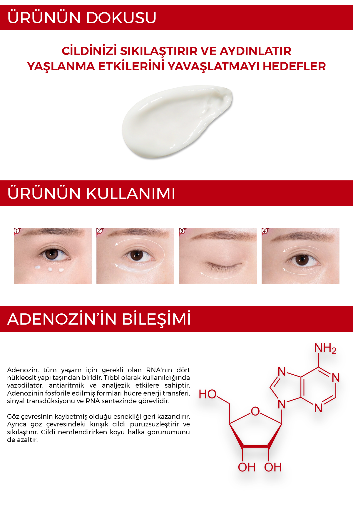 Adenozin: İnce çizgi ve kırışıklık görünümünün azalmasına yardımcı olur.